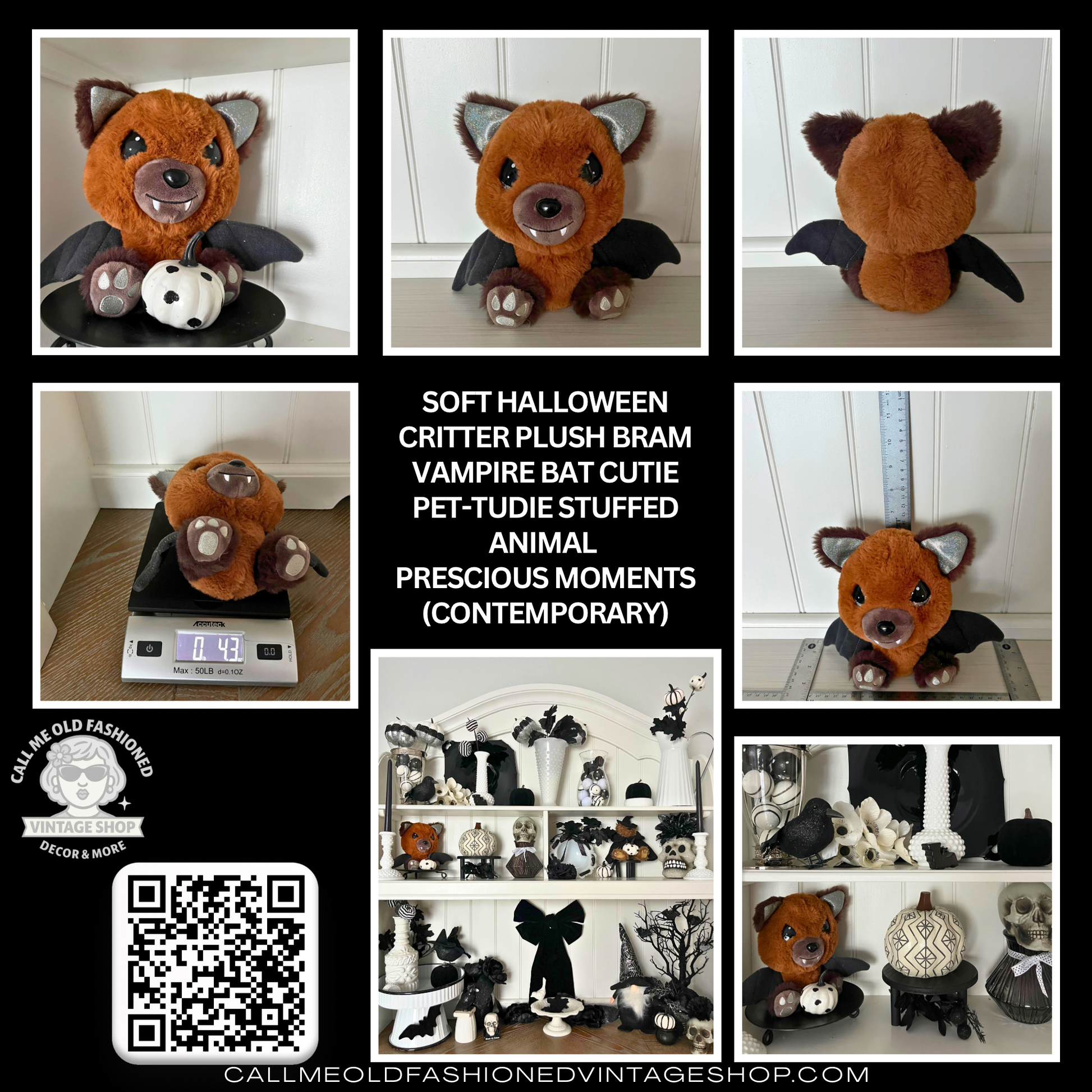 Plush Vampire Bat Toy with Silver Sparkle Ears – Soft Halloween Critter Plush Precious Moments (Contemporary)