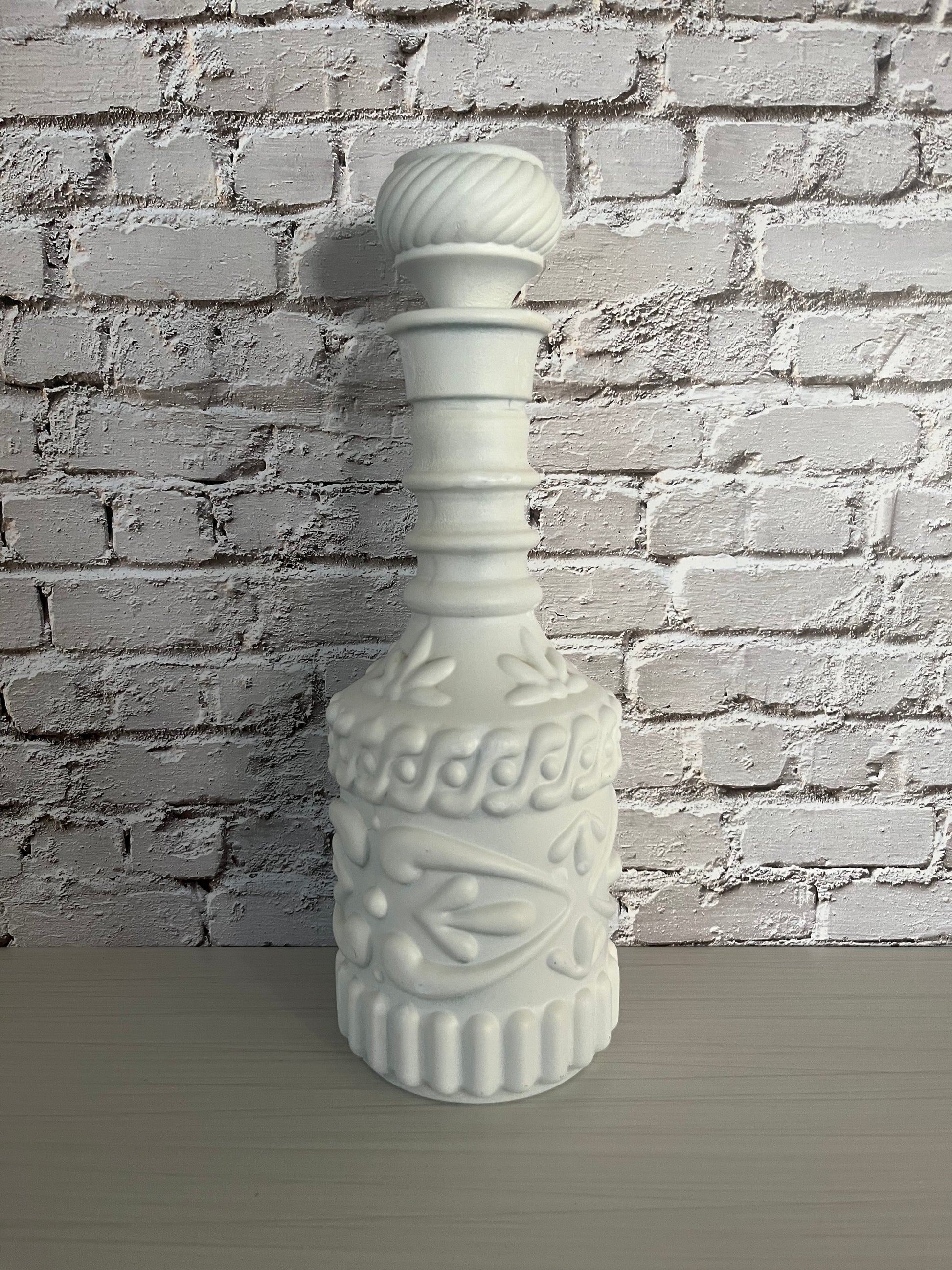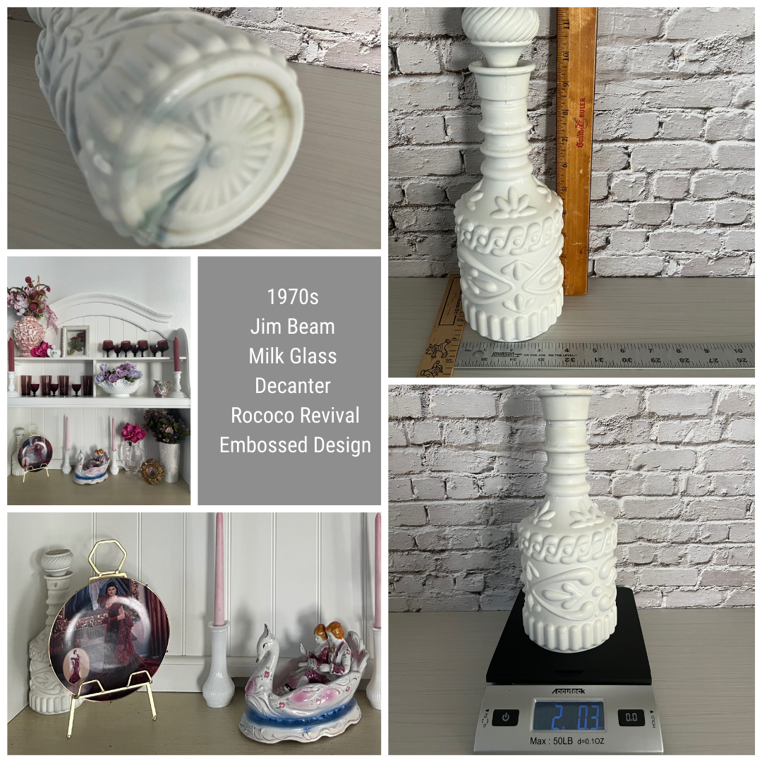 1970s Jim Beam Milk Glass Decanter – Rococo Revival Embossed Design