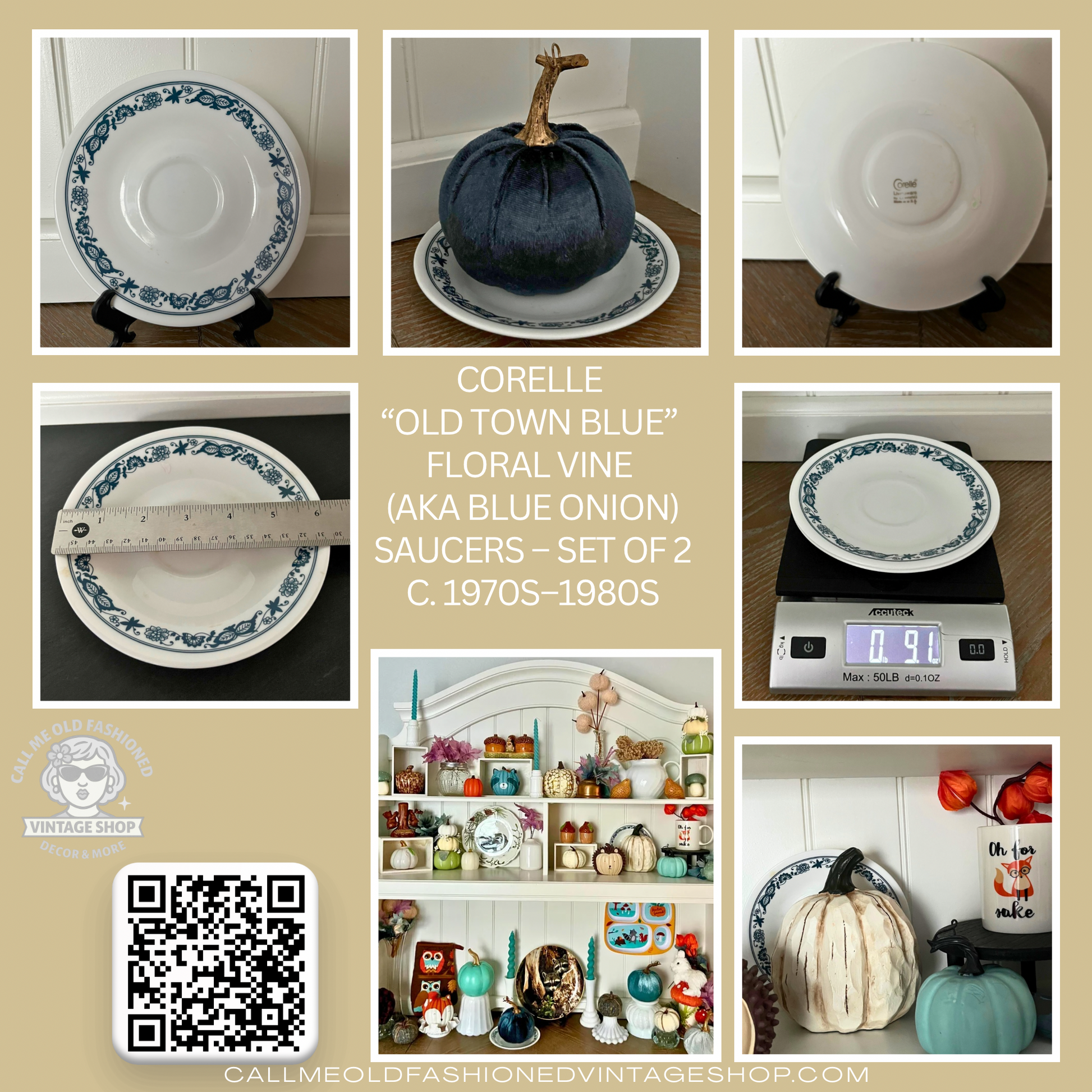 Corelle “Old Town Blue” Floral Vine )aka Blue Onion) Saucers – Set of 2 c. 1970s–1980s