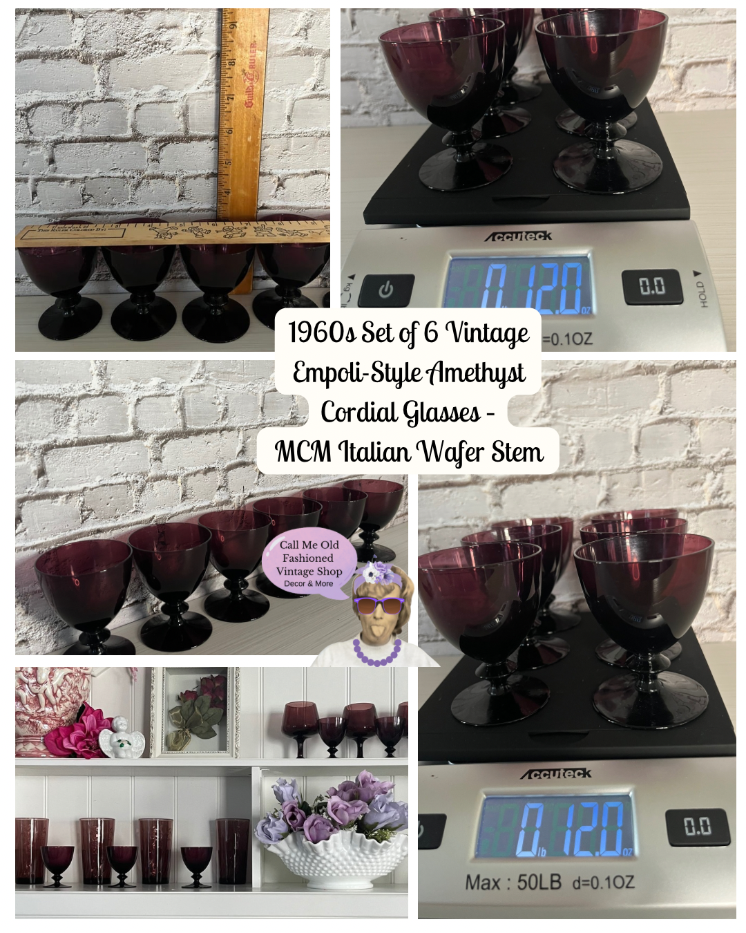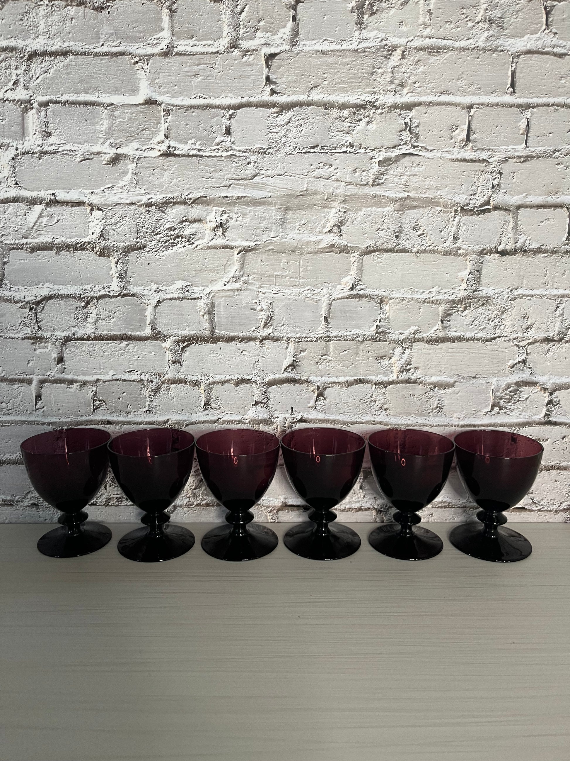1960s Set of 6 Vintage Empoli-Style Amethyst Cordial Glasses – MCM Italian Wafer Stem,