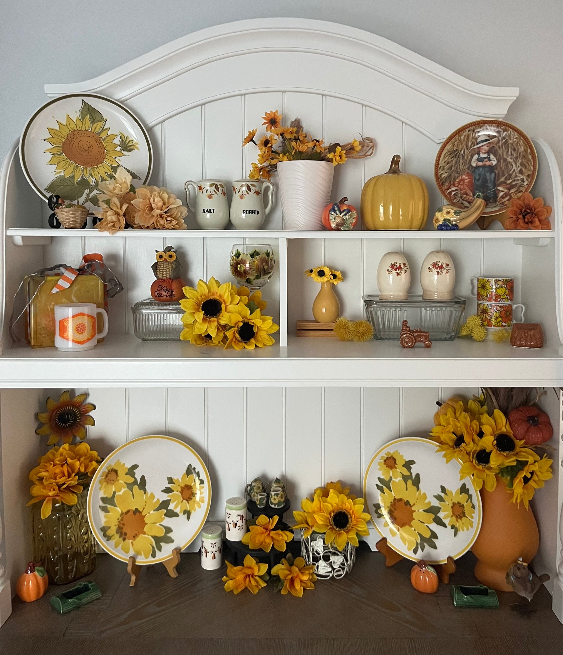 • Style with pumpkins, hay bales, and sunflowers in your Golden Harvest vignette.