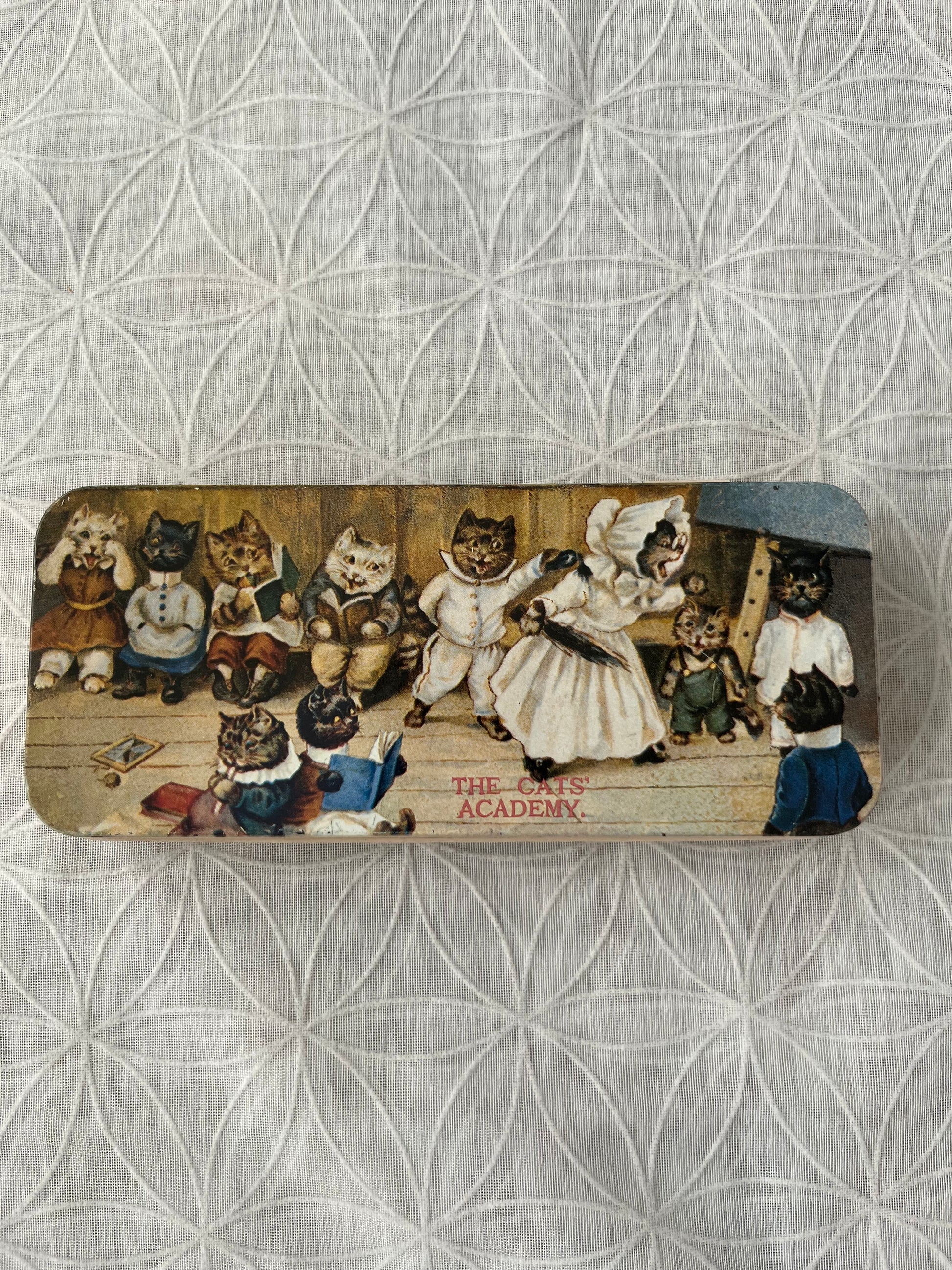 Super cute Vintage 1990’s Louis Wain Cats Academy Hinged Tin Pencil Box - Victorian Cat Art