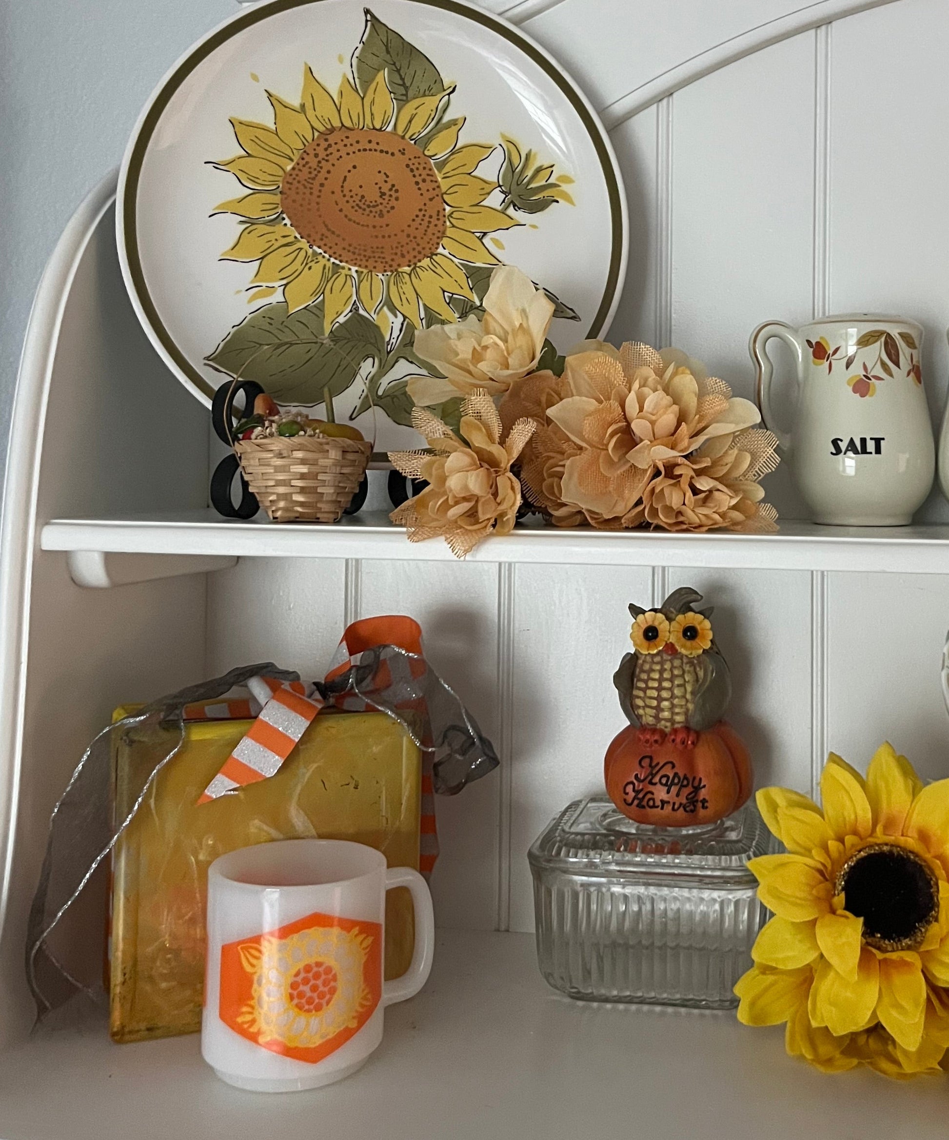This petite handwoven basket is brimming with miniature faux vegetables, flowers, and harvest accents — including a yellow pumpkin, red radish, and orange pepper. Each element is nestled in dried floral filler for a charmingly rustic look. A delightful accent for dollhouse scenes, shelf styling, or farmhouse displays, this piece captures cozy autumn warmth in miniature form.