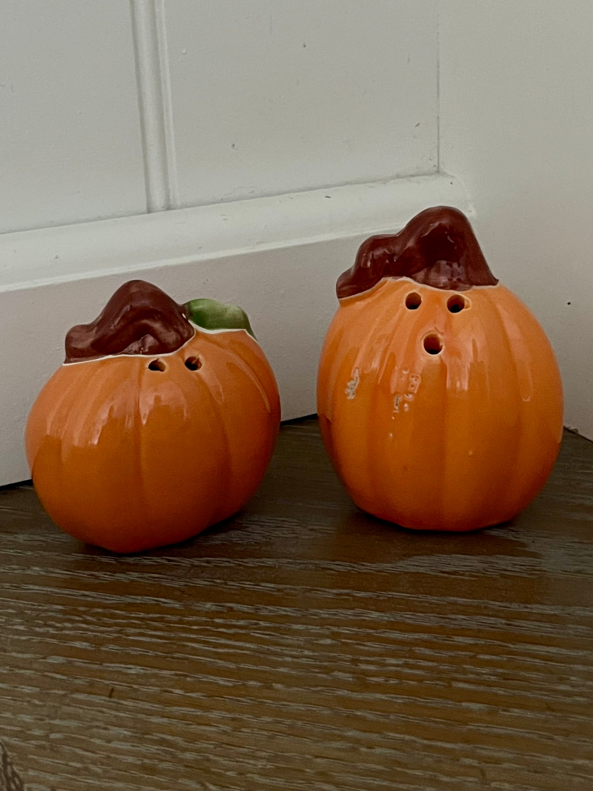 Pair of Vintage Pumpkin Salt & Pepper Shakers Material: Glazed Ceramic