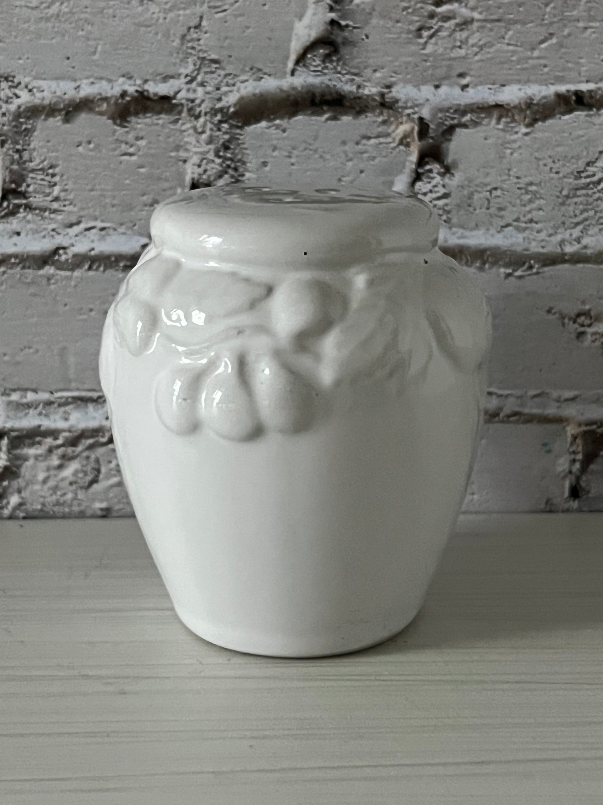 Retro 1980s–1990s White Grapevine Ceramic Salt Shaker – Single Orphan Shaker, Cottage Farmhouse Kitchen Accent