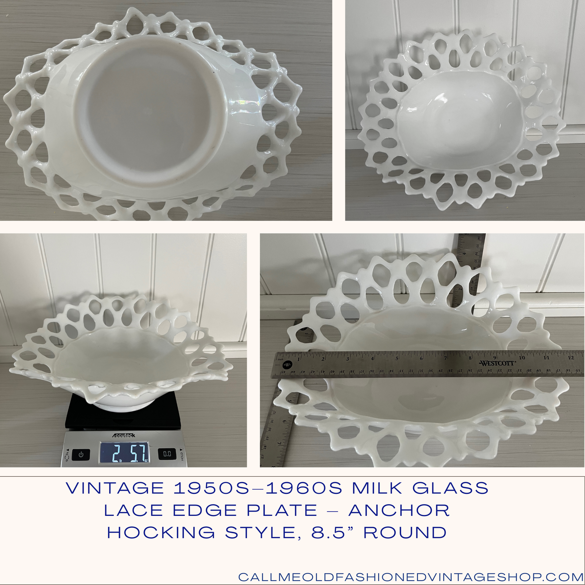 This charming vintage milk glass bowl features a striking open lace reticulated rim and gently scalloped edges. With its bright opaque white finish and footed base, it’s both a functional serving piece and an elegant collectible display. Measuring approx. 10.75” in diameter, 4” tall, and weighing 2 lb 5.7 oz, it’s a substantial example of mid-century glass artistry. Perfect for cottage-style kitchens, farmhouse tables, or vintage-inspired décor.