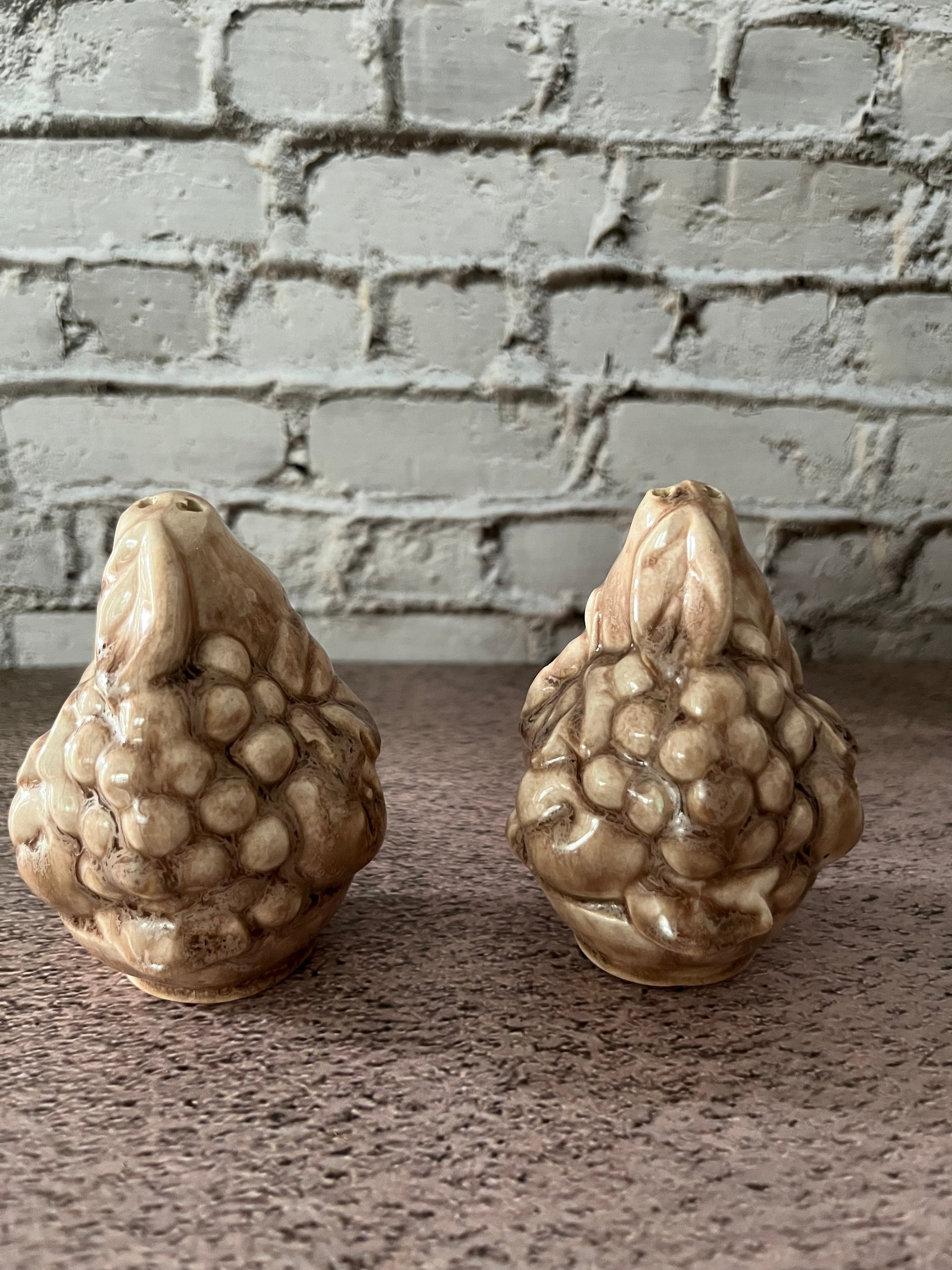 Vintage 1970s Neutral Color Inarco Style Ceramic Fruit Basket Topiary Salt & Pepper Shakers -