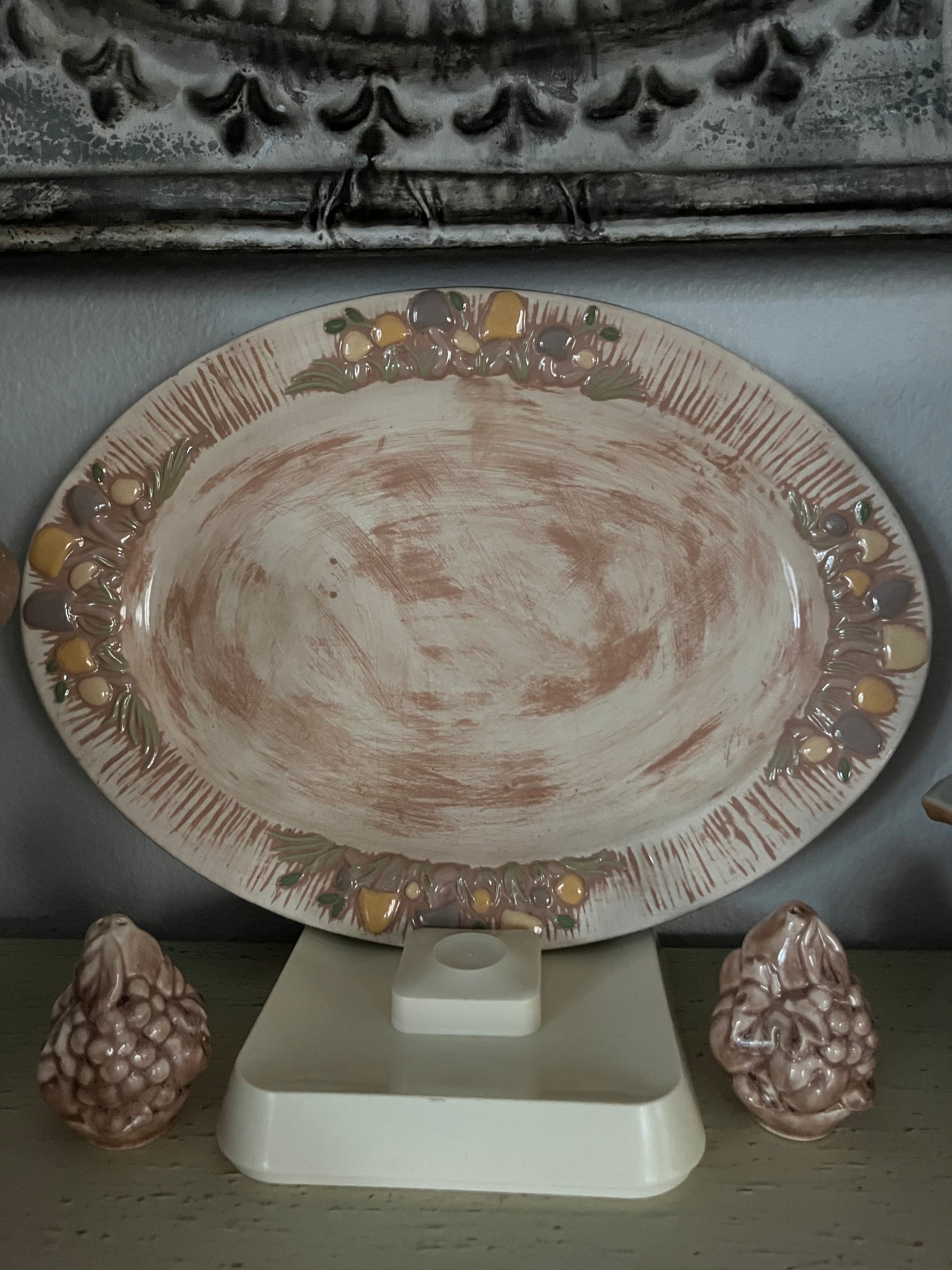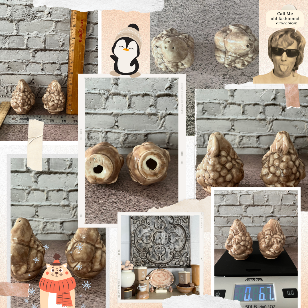 Add a touch of rustic charm to your dining table with this delightful Vintage 1970s Inarco Ceramic Fruit Basket Topiary Salt & Pepper Shaker Set. Hand made these neutral beige shakers feature a beautifully detailed fruit basket (pear, grapes etc) design, perfect for cozy cabin vibes or farmhouse-inspired decor. Each shaker is approximately 2 ½” wide and 3 ½” high, weighing 10 oz. These shakers are decorative, making them an ideal addition to your vintage kitchen salt & pepper collection.