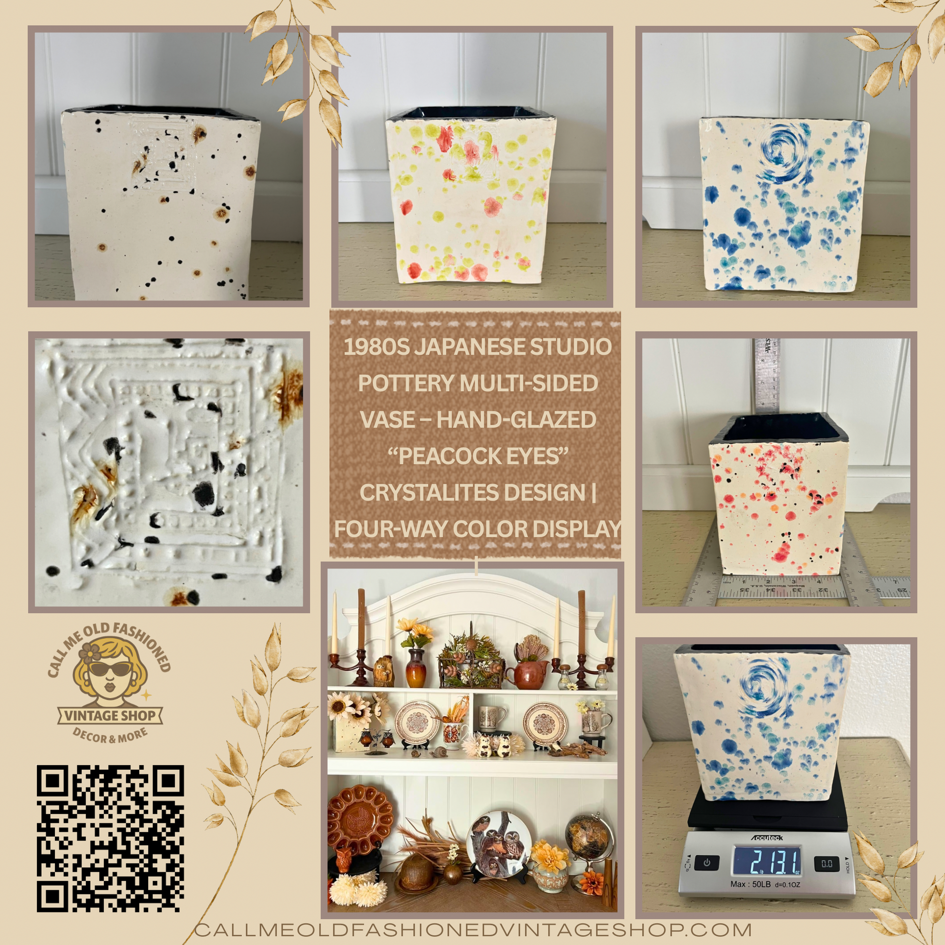 1980s Japanese Studio Pottery Multi-Sided Vase – Hand-Glazed “Peacock Eyes” Crystalites Design | Four-Way Color Display