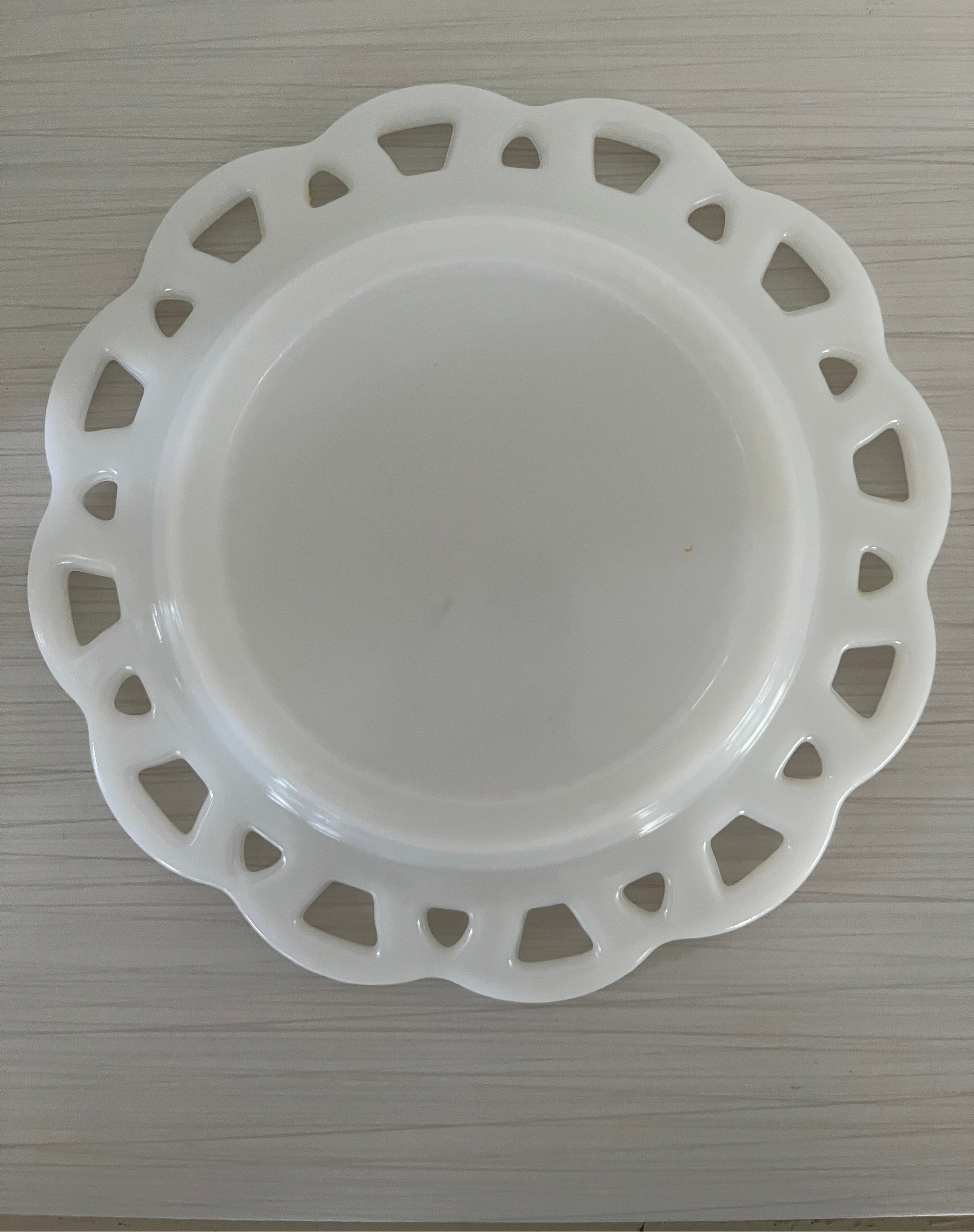 Vintage 1950s–1960s Milk Glass Lace Edge Ribbon Plate – Anchor Hocking Style, 8.5” Round