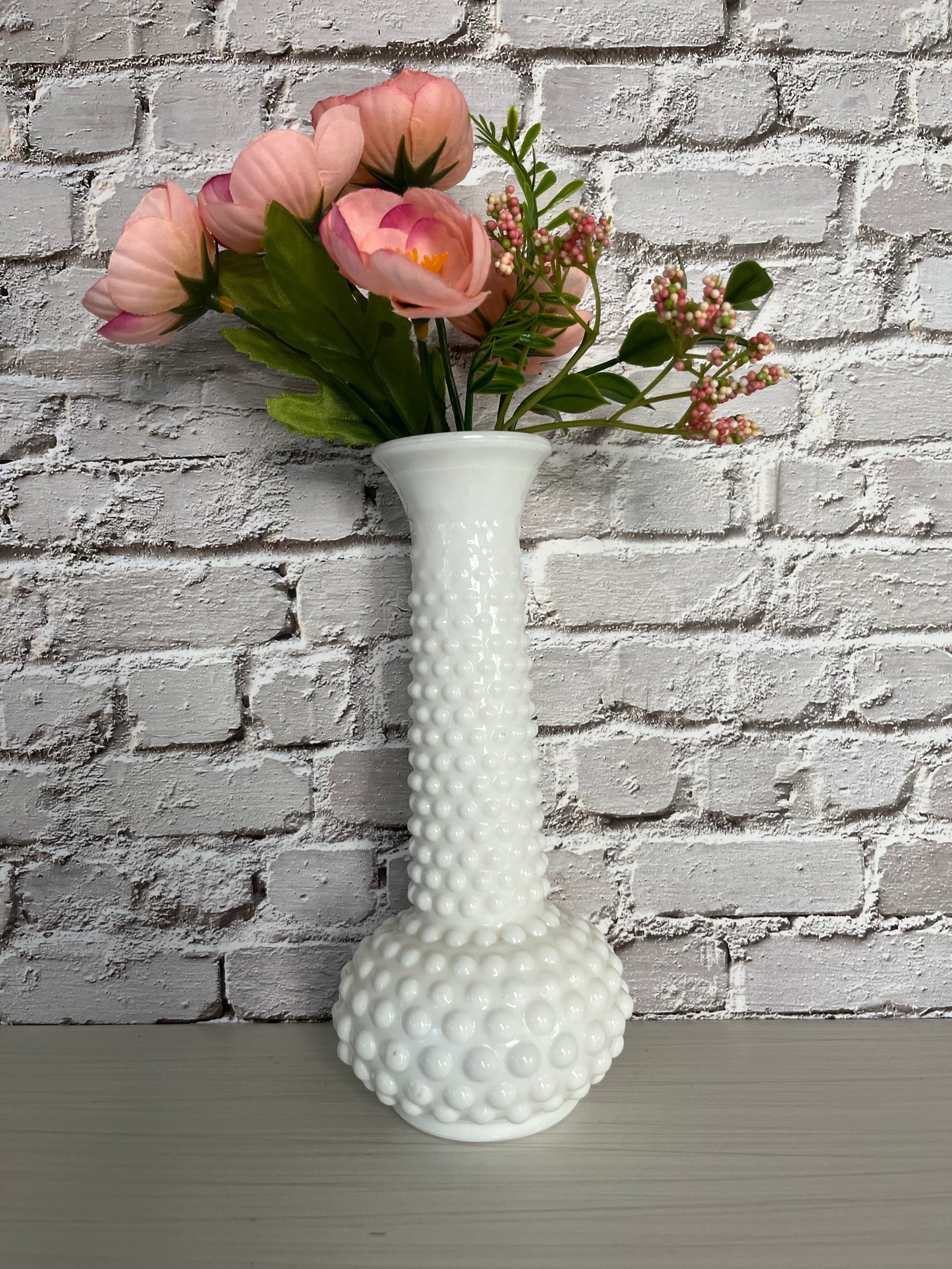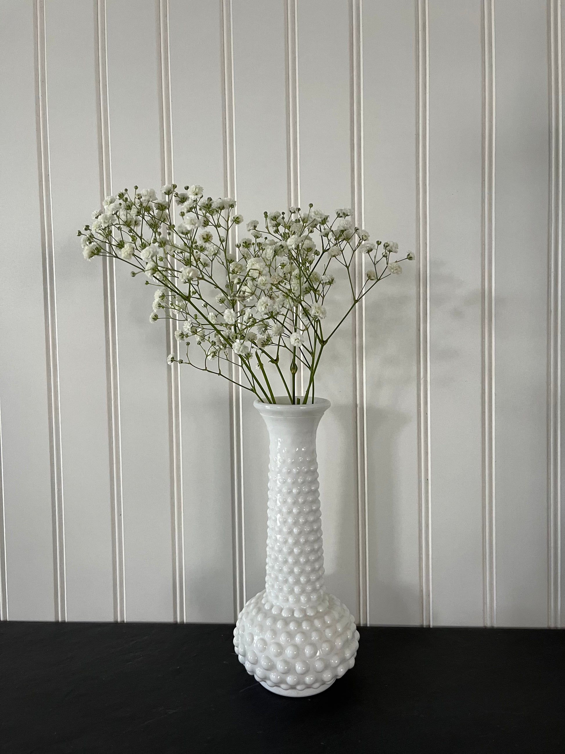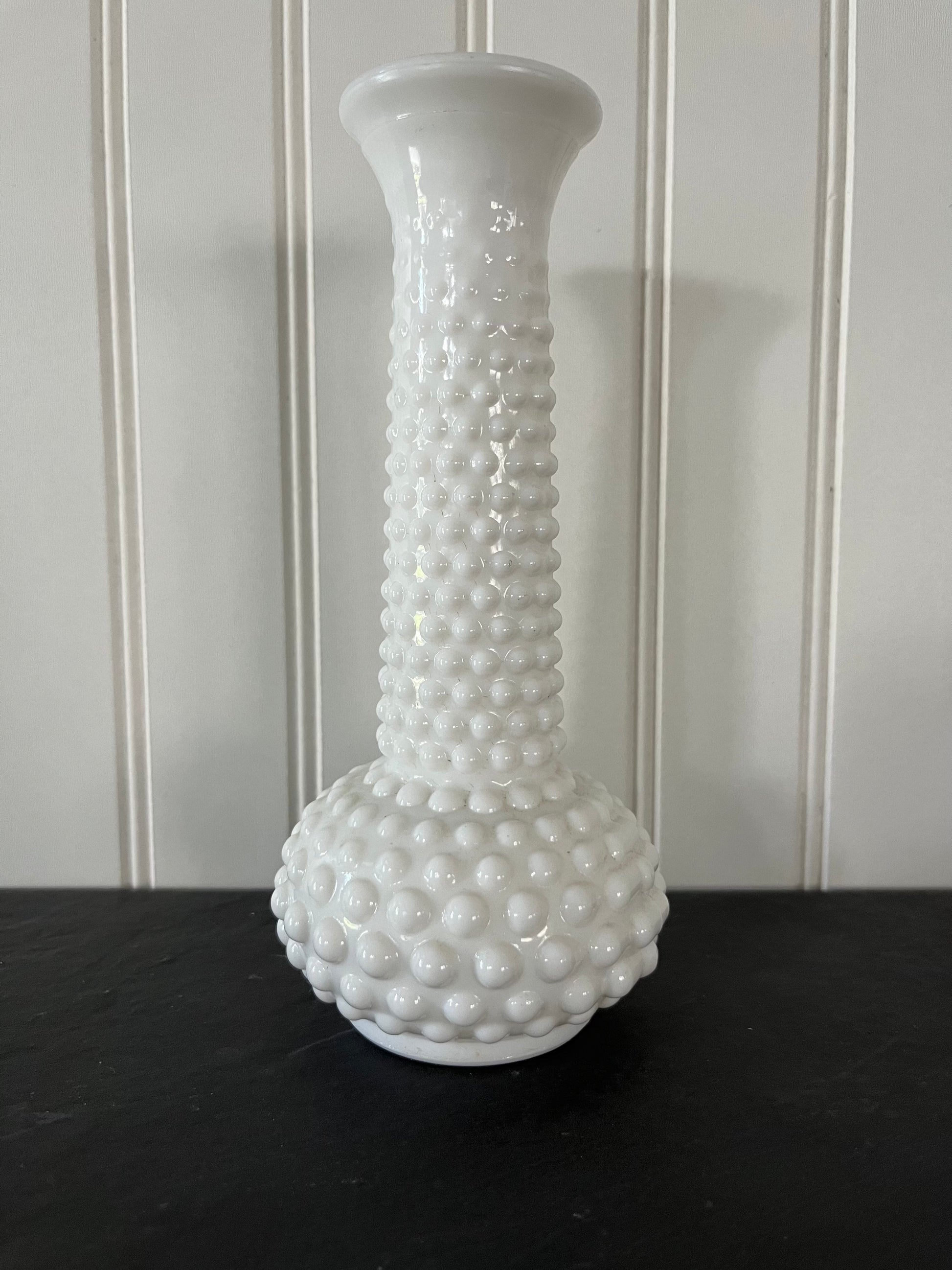 Vintage 1950’s EO Brody Co. White Milk Glass Hobnail Bud Vase