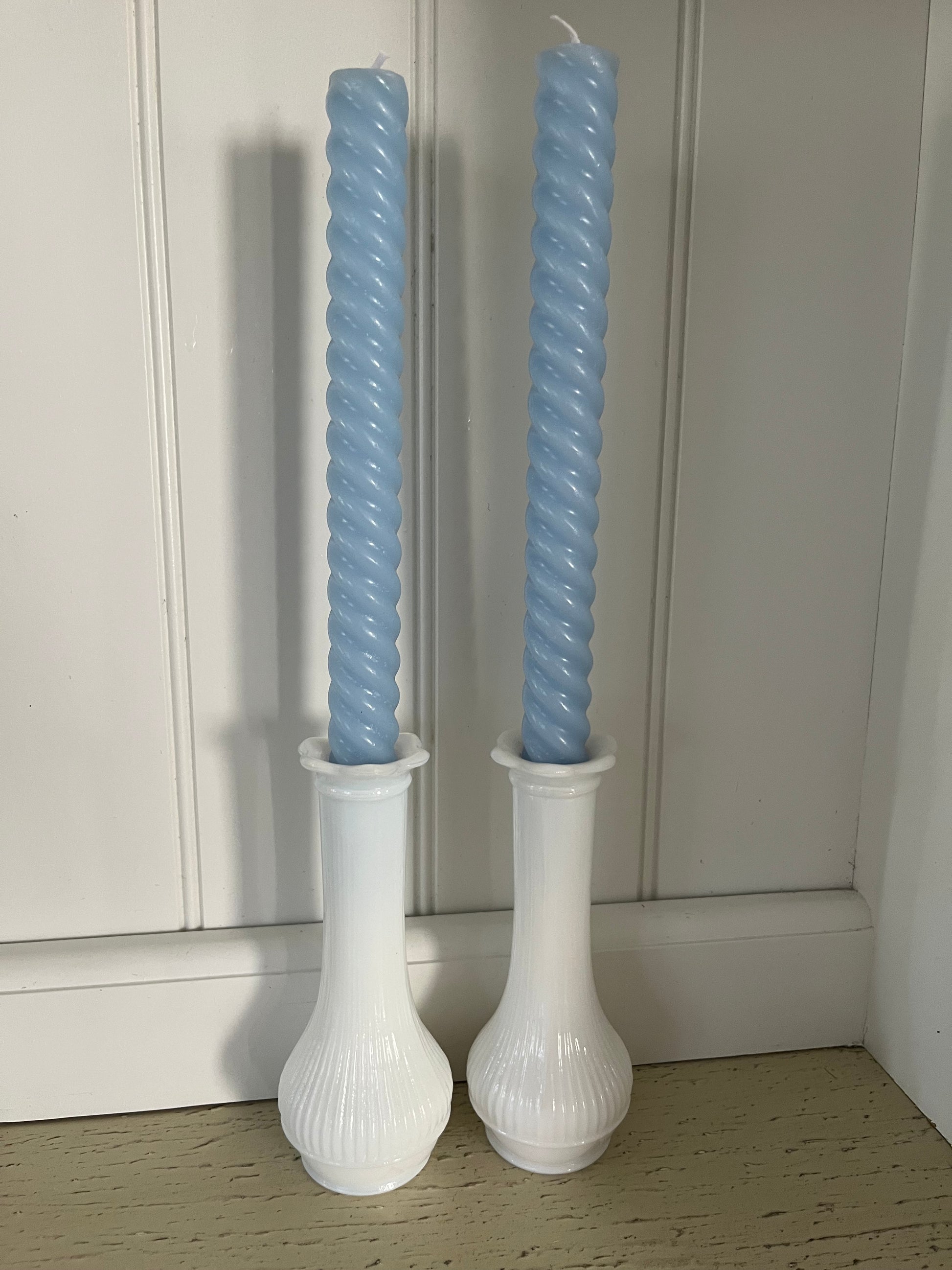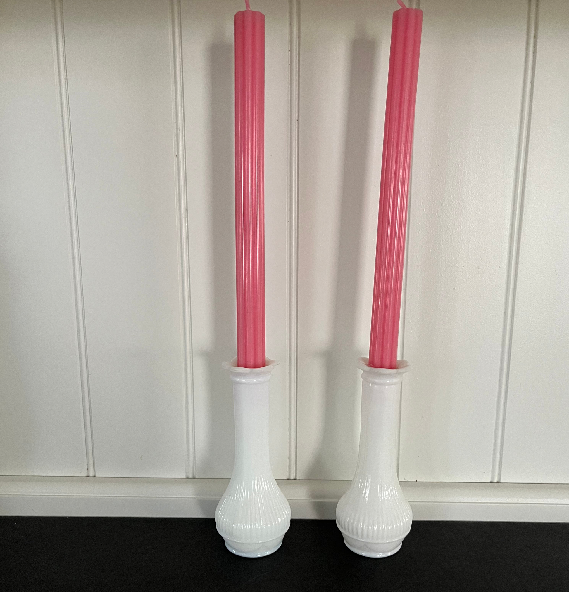 This is for 2 vintage milk glass bud vasescrafted by Loeffler Randall, is a charming decorative piece. Standing at approximately 6 inches in height with a 2-inch diameter, it weighs 6.3 ounces. The vase features a unique scalloped flower petal lip, adding a touch of elegance to your floral arrangements. Whether you're a collector or simply want to add a touch of vintage charm to your decor, this milk glass bud vase is a beautiful choice.
