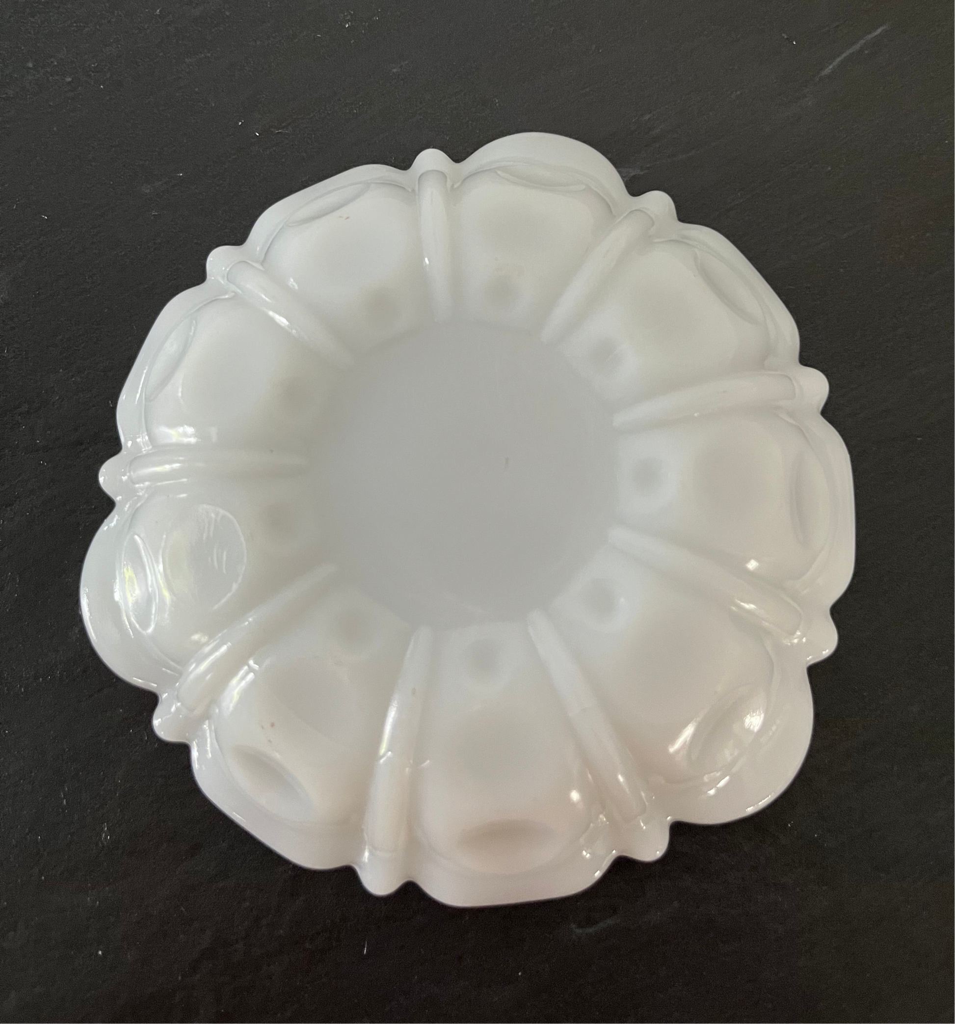Vintage Mid Century Anchor Hocking Milk Glass Trinket Dish - Thumbprint Ashtray -