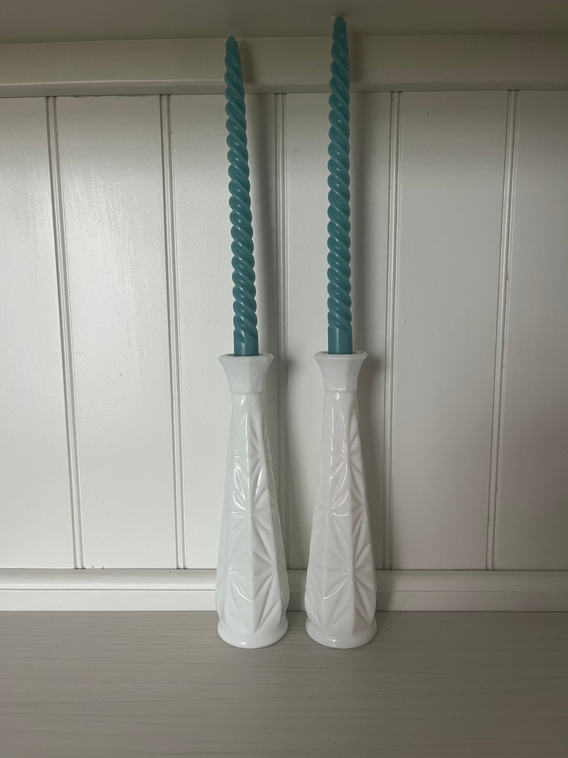 Elevate your decor with the mesmerizing beauty of mid-century design with this captivating Anchor Hocking milk glass vase. Don't miss the opportunity to own a piece of vintage glass history that brings both beauty and sophistication to your home.