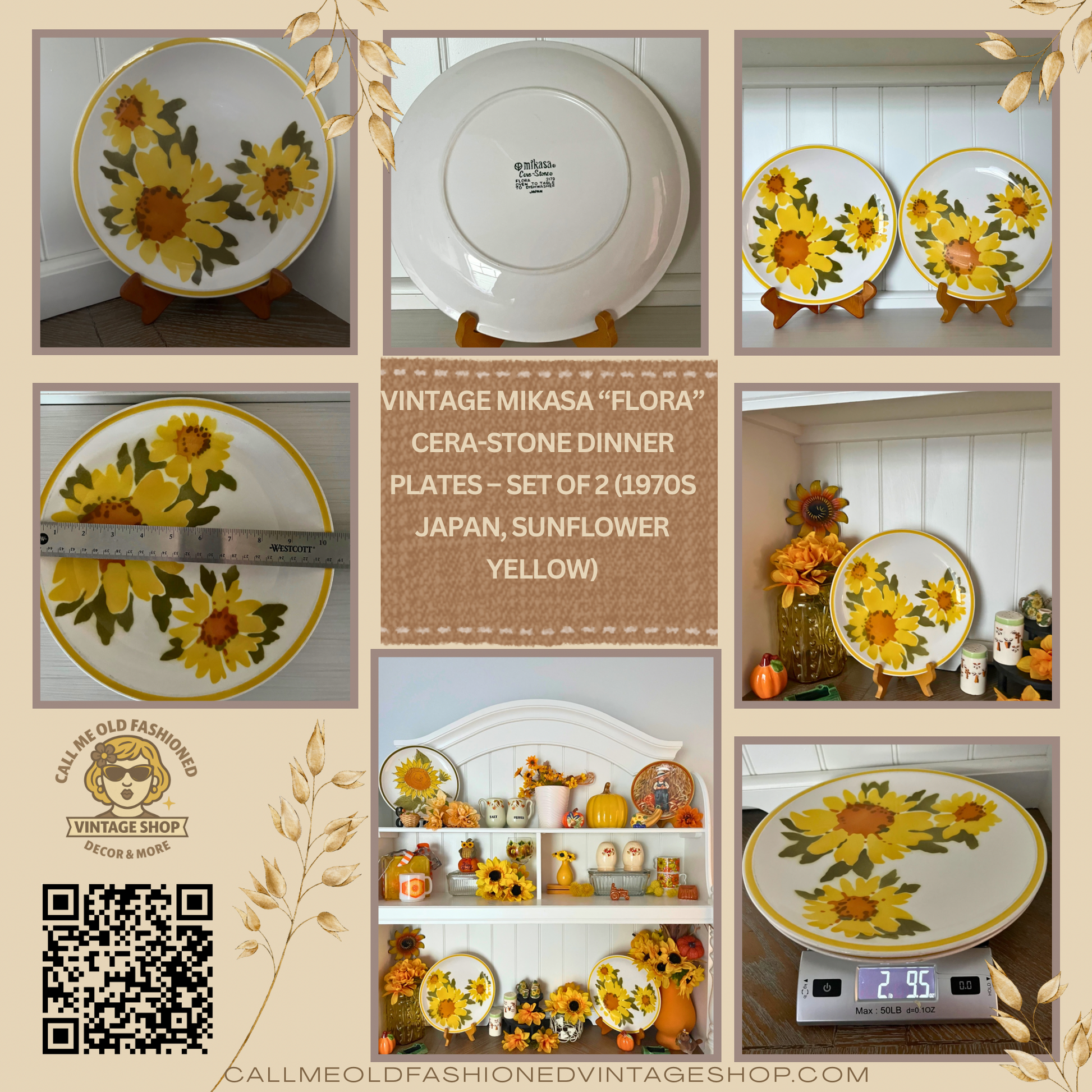 The Mikasa Cera-Stone collection was introduced in the late 1960s and remained a favorite through the 1970s for its hand-crafted aesthetic and earthy glaze finishes. The Flora pattern (3179) reflected the era’s obsession with nature — bold botanical motifs, harvest colors, and designs that felt both rustic and modern. Today, this pattern is cherished by collectors and cottage-core enthusiasts for its timeless sunflower charm and nostalgic appeal.
