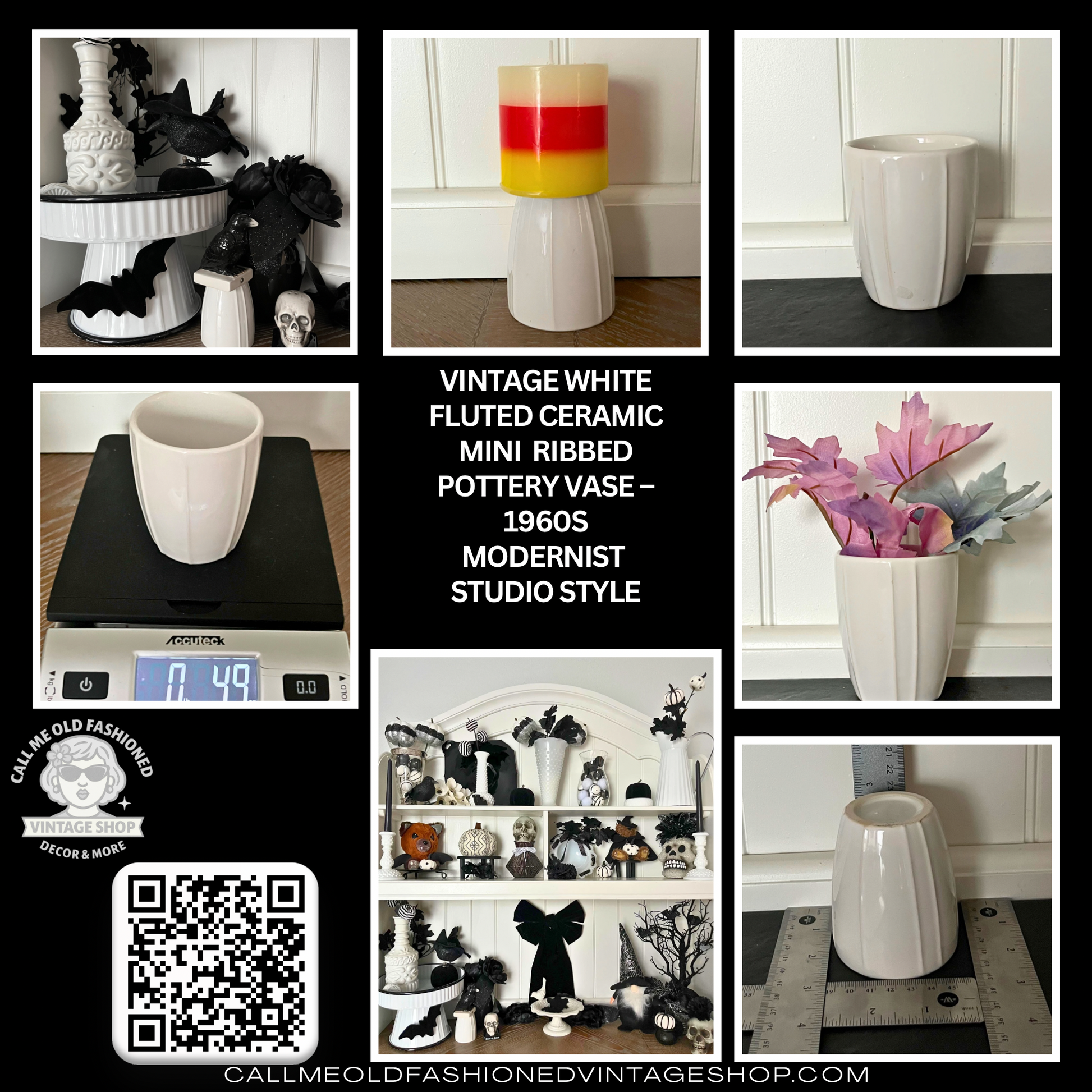 Vintage White Fluted Ceramic Mini 3”x2 1/2”Ribbed Pottery Vase – 1960s Modernist Studio Style